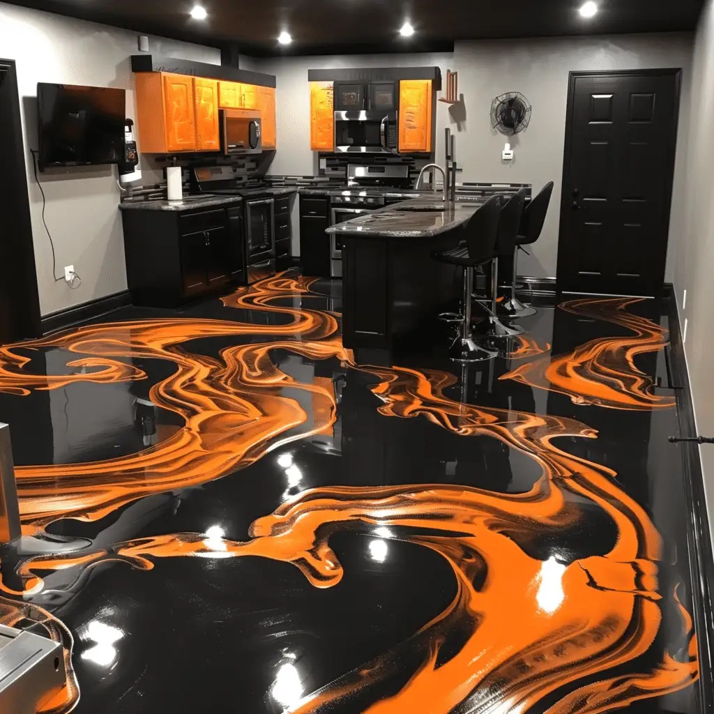 Metallic epoxy flooring is a type of decorative flooring system that combines epoxy resin with metallic pigments to create a unique, glossy, three-dimensional effect on the floor surface. It is often used in residential, commercial, and industrial settings since it provides a strong, durable, and visually attractive finish.